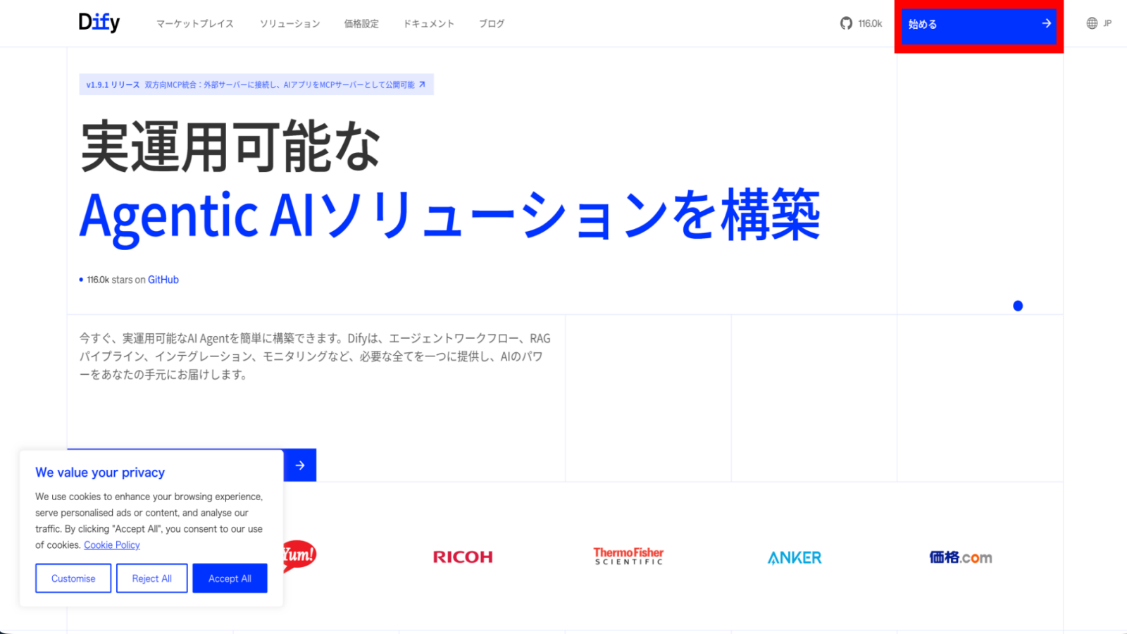 Difyの公式サイトは下記になります。リスティングなどで偽サイトに誘導されないように気をつけましょう。